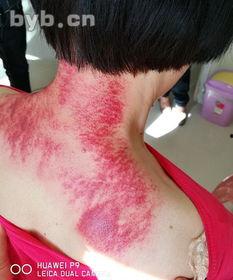 4. 刮痧效果:刮痧后,皮肤会出现红、紫、黑等颜色,这就是所谓的“痧”。图片中可以看到,痧的颜色越深,说明效果越好。